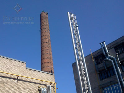 Демонтаж кирпичной дымовой трубы высотой 41 метр